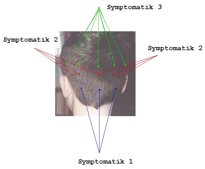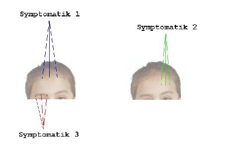 der Stirn werden wir alle Symptomatik-Schichten finden. Nach erfolgreicher Behandlung mĂŒssen alle Symptomatik- Schichten verschwinden.