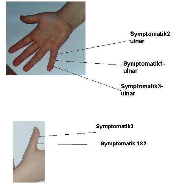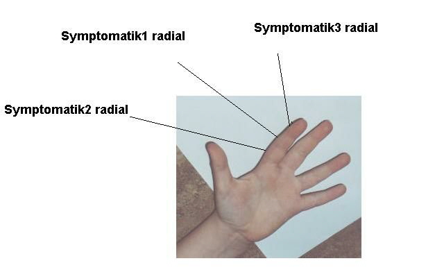 Eine Ausnahme bildet hier der Daumen. Die Symptomatik 1 und 2 (radial und ulnar) sind in einem Punkt vereint auf der Mitte