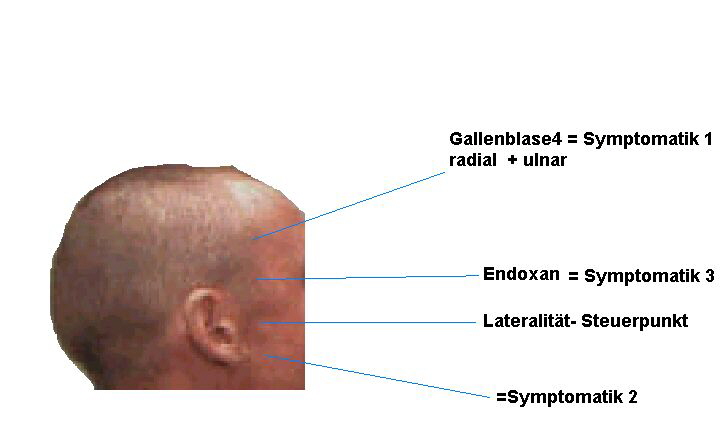 Nadelung der Handsyptomatikpunkten fĂŒhrt zum Verschwinden der Stirn- bzw. der Hinterkopfsymptomatikpunkten und umgekehrt.
