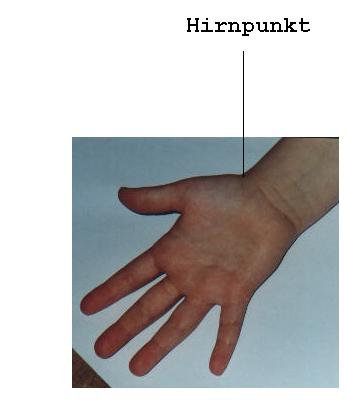 - Der zweite Punkt liegt auf der Handgelenkfalte, an der Stelle wo der Puls ĂĽber a. Radialis zu tasten ist. Diesen Punkt werde ich weiter den Hirnpunkt