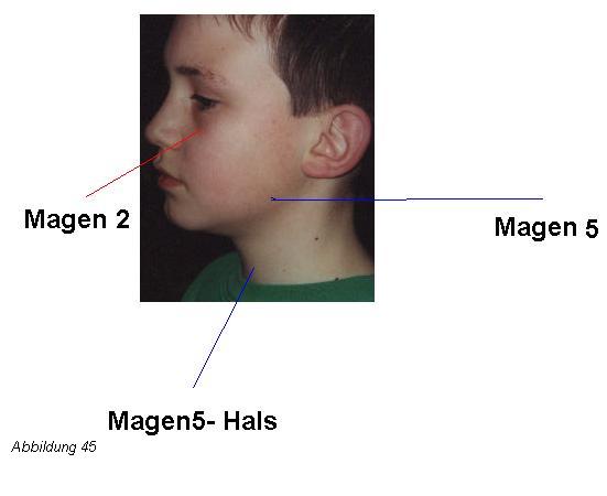 tatsächlich im Gesichtsbereich, am Hals und auf der Hand. Der Punkt im Gesichtsbereich entspricht Magen5.